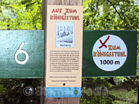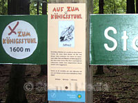 Oder man wandert vom Parkplatz durch den Wald zum Königstuhl. Die ca. drei Kilometer sind als Lehrpfad  mit 7 Stationen gestaltet. Dabei werden auch immer interessanten Frage zur Natur gestellt und drei Antworten als Auswahl vorgegeben.