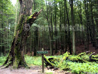 Und hier wieder die Frage: Wie alt ist die Buche, vor der die Markierung steht?